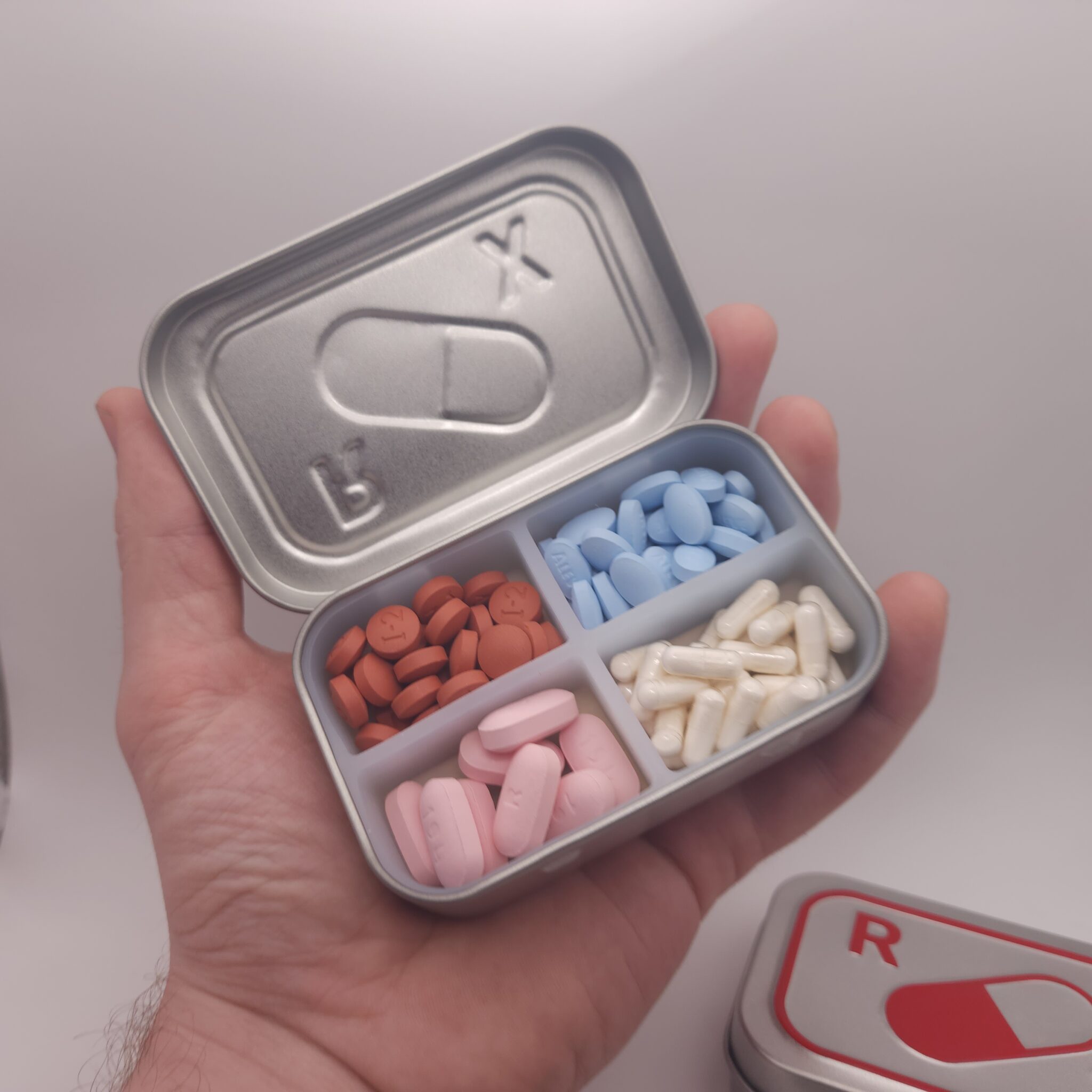 Embossed Pill Organizer Tin with Silicone Insert