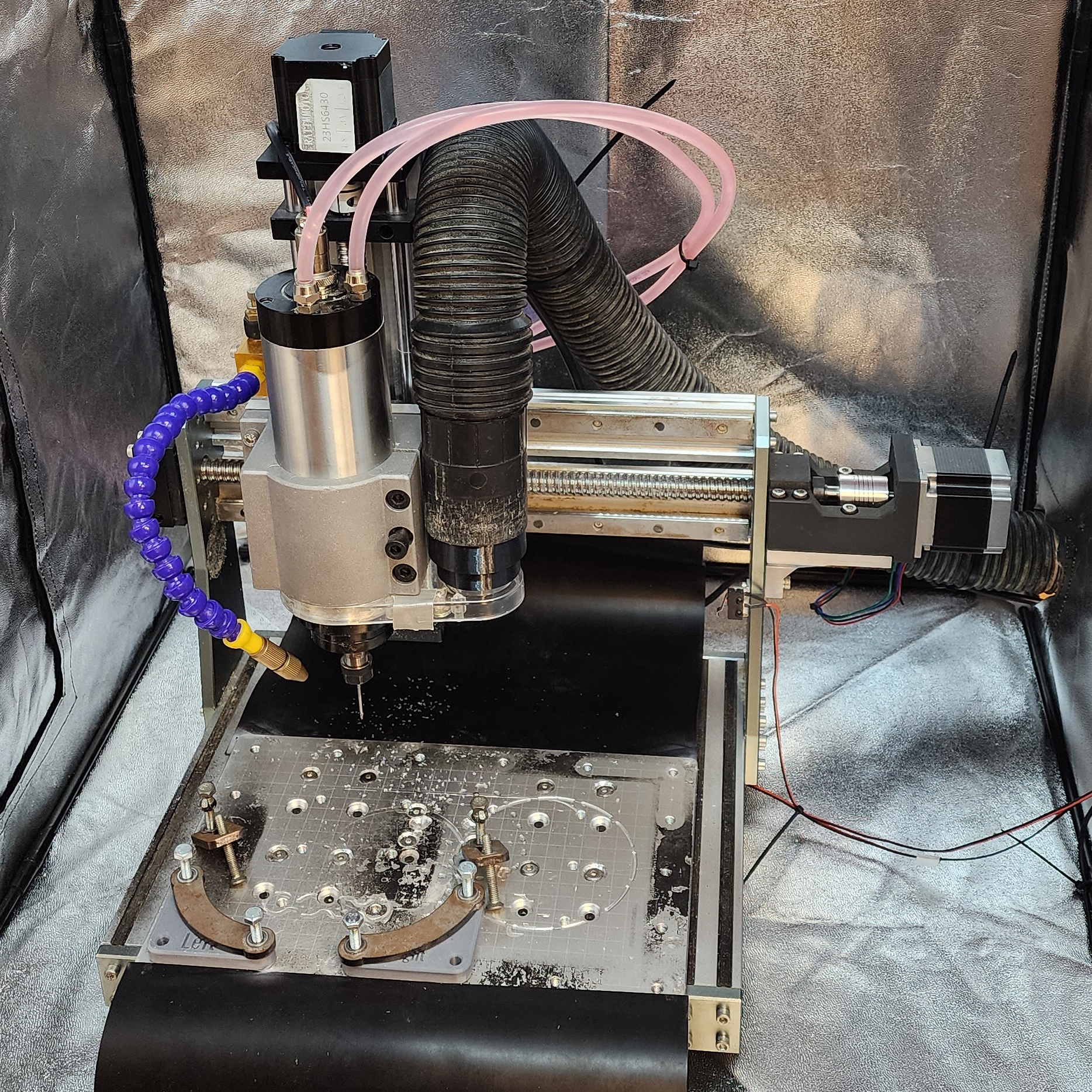 Around the end of 2022 I got into CNC milling with a Genmitsu 3020 desktop CNC mill, a common entry point into CNC for the home workshop. The machine had all the features I could ask for considering the price of the unit. However, as my knowledge and abilities in CNC grew I started wishing for some added power my machine just didn’t have from the factory. And what started as needing a new spindle for some more power turned into replacing lead screws reducing the amount of ‘looseness’ in the screw, upgrading to larger stepper motors allowing for greater cutting force, and switching to a water cooled VFD spindle for all day machining capacity. But as you’ll see, the upgrades were worth it and allow me to run more depth and feed rate than before, and do it all day staying cool.